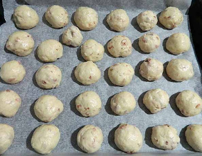 e staccare dei pezzetti tali da formare dei bocconcini grossi quanto una noce, mettere i Bocconcini Rustici all’Olio sulla teglia foderata di carta da forno,