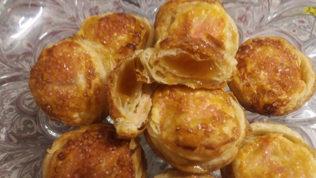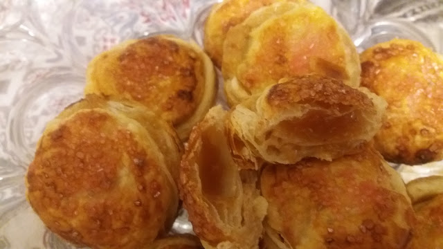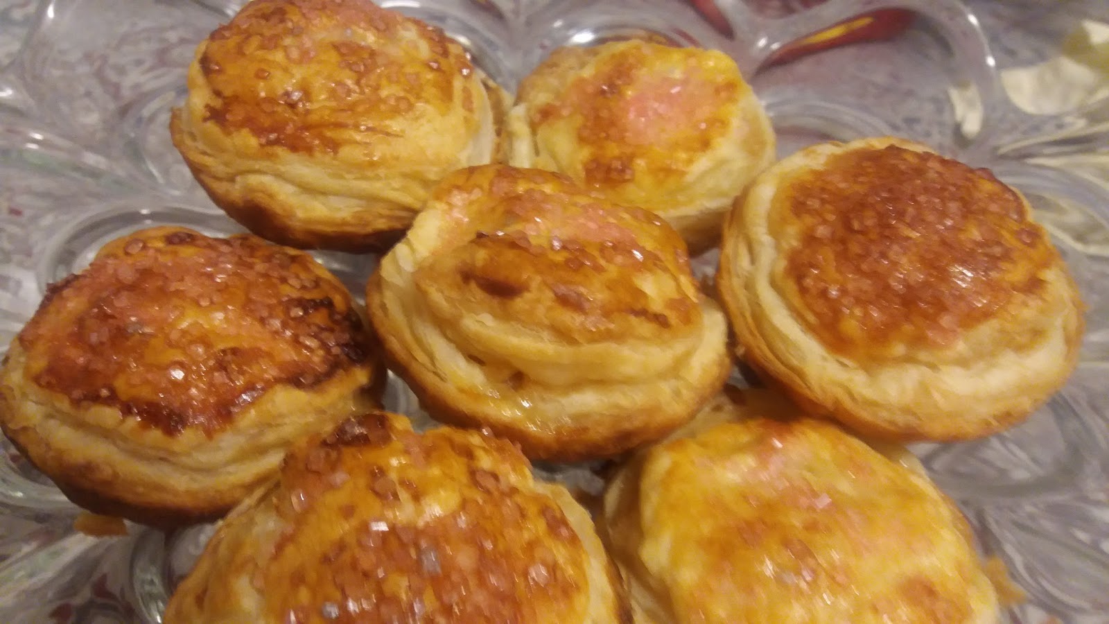 con la pasta sfoglia formare dei dischetti da inserire in uno stampo x tartine,farcire