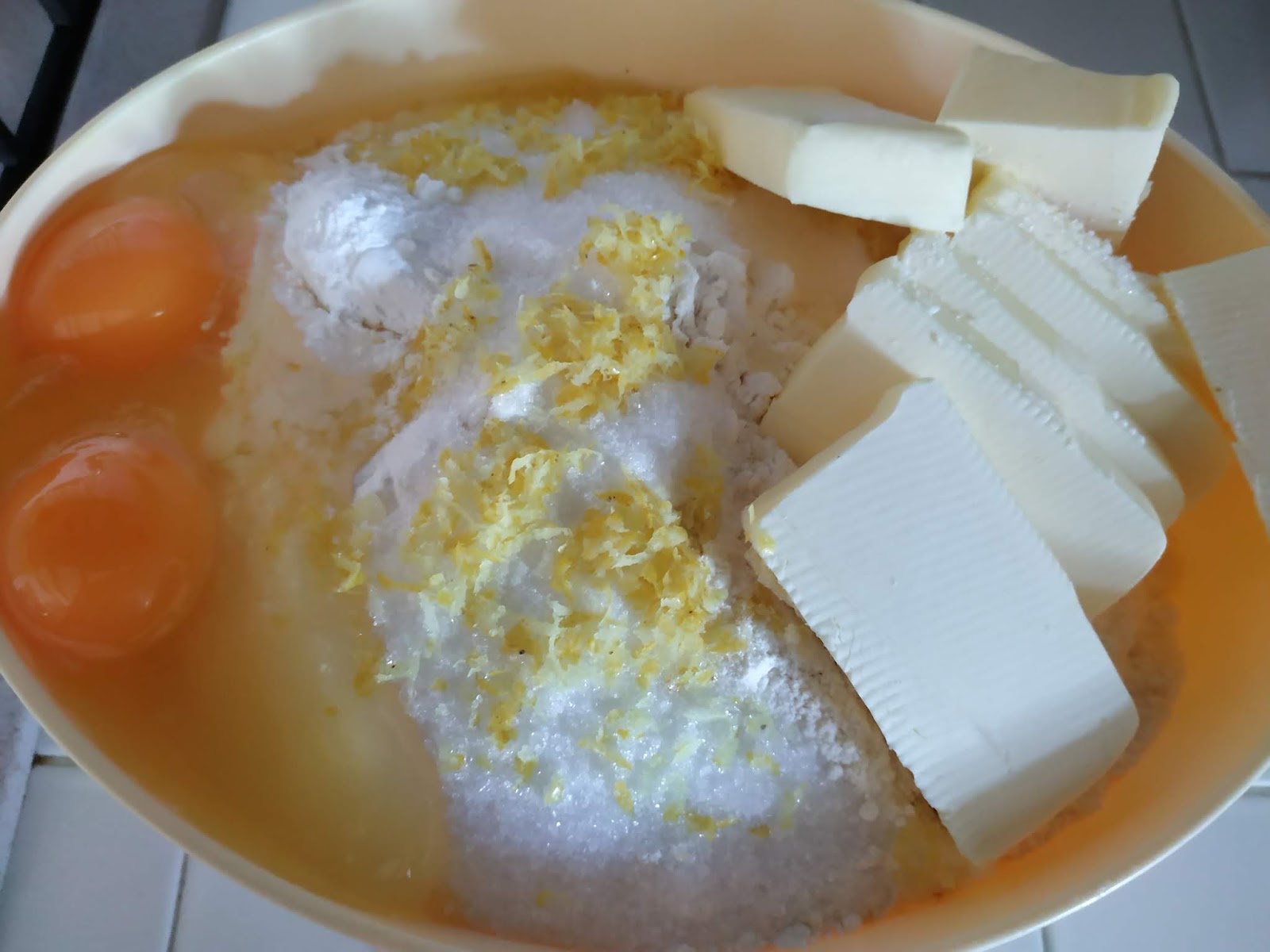 Per la frolla: 250 g di farina 00, 250 g di farina integrale, 200 g di zucchero integrale di canna, 2 uova e 1 tuorlo, 200 g di burro, buccia grattugiata di limone.