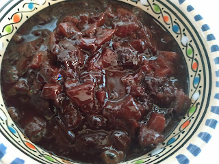 Quando tutta l’acqua della frutta si sarà asciugata, spegniamo il fuoco e uniamo 80 g di cioccolato fondente; amalgamiamo e facciamo raffreddare bene il composto.