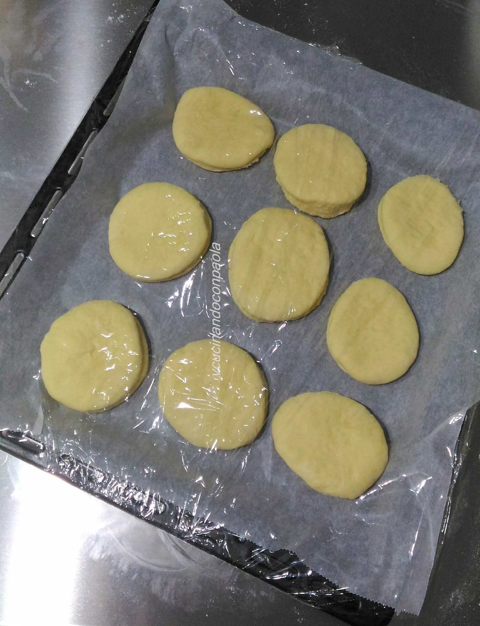 Disponeteli ben distanziati nelle teglie con la carta da forno e copriamo con la