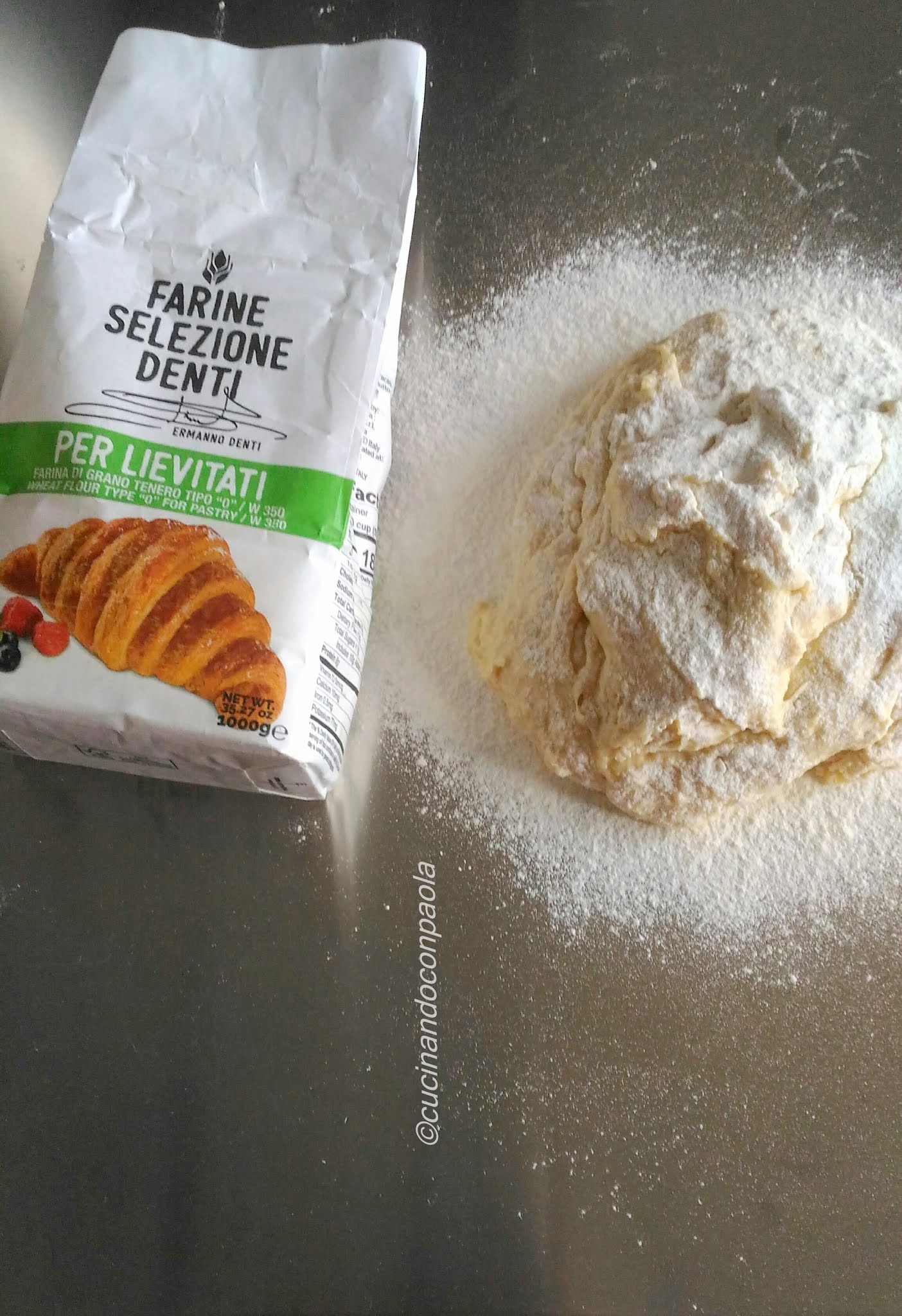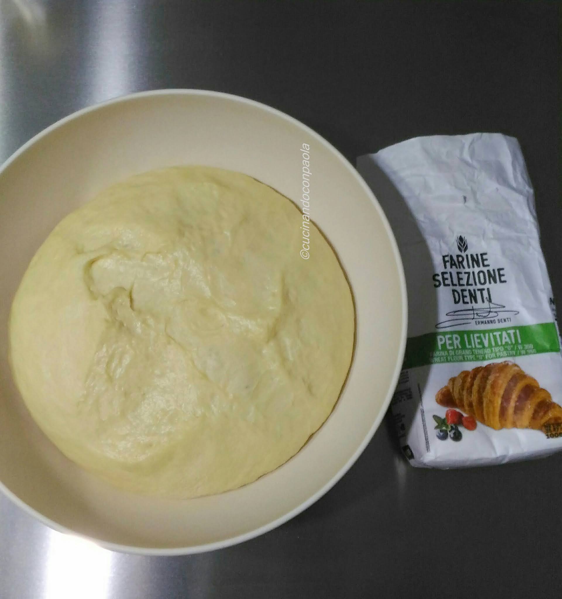 Dopo che avrà lievitato disponetelo sul piano di lavoro e sgonfiamo l’impasto.