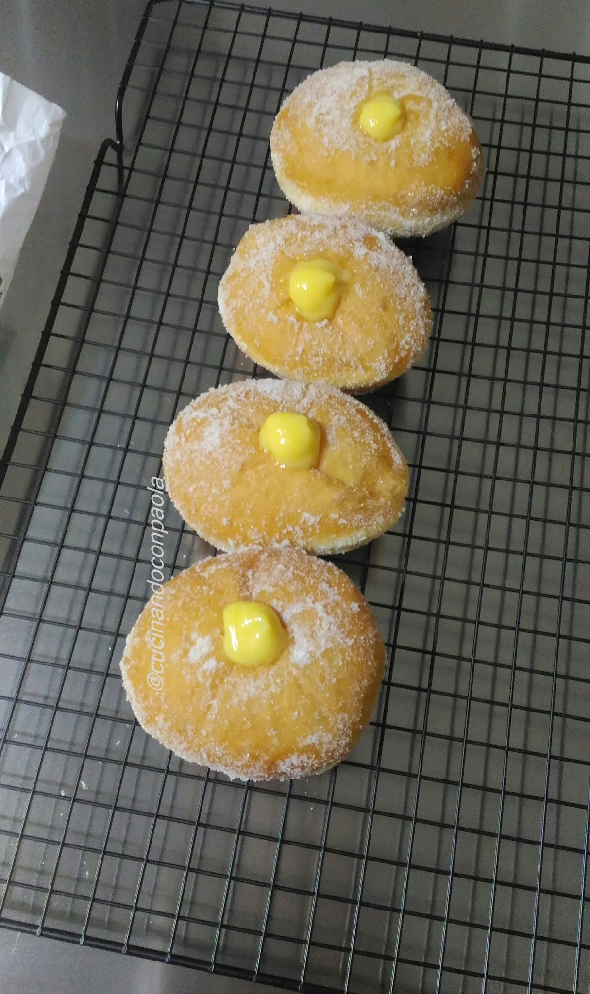 Mettiamo la crema pasticcera nella sac-a-poche e riempire i bomboloni.