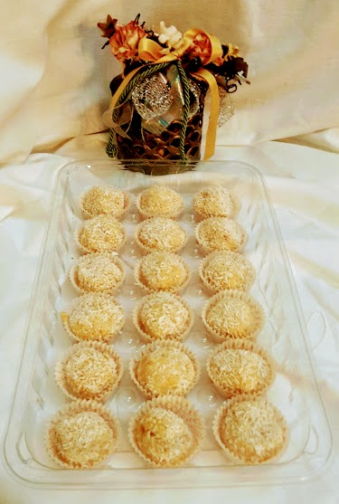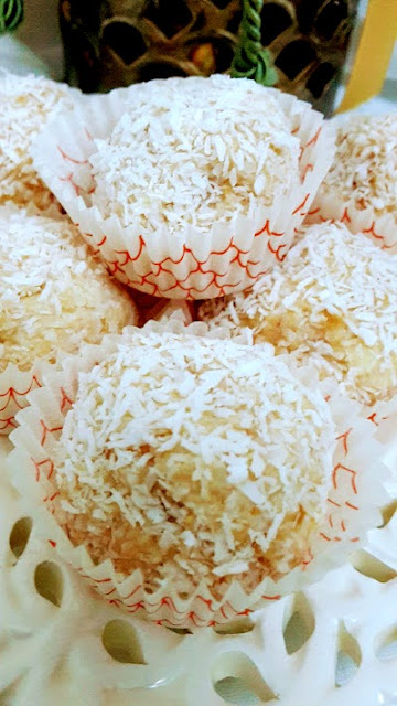 Prelevare delle piccole porzioni e rotolarle nel cocco posto in un piattino….