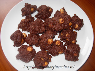 Tritare datteri, noci e banane. Sciogliere a bagnomaria il burro e la pasta di cacao. Unire tutto ed amalgamare bene, aggiungere le nocciole ed ottenere delle “palline” con l’aiuto di un cucchiaio. Distribuirle su un vassoio con carta argentata. Lasciar indurire in frigo almeno per 6 -7 ore, il giorno dopo sono morbidi ma compatti al punto giusto.