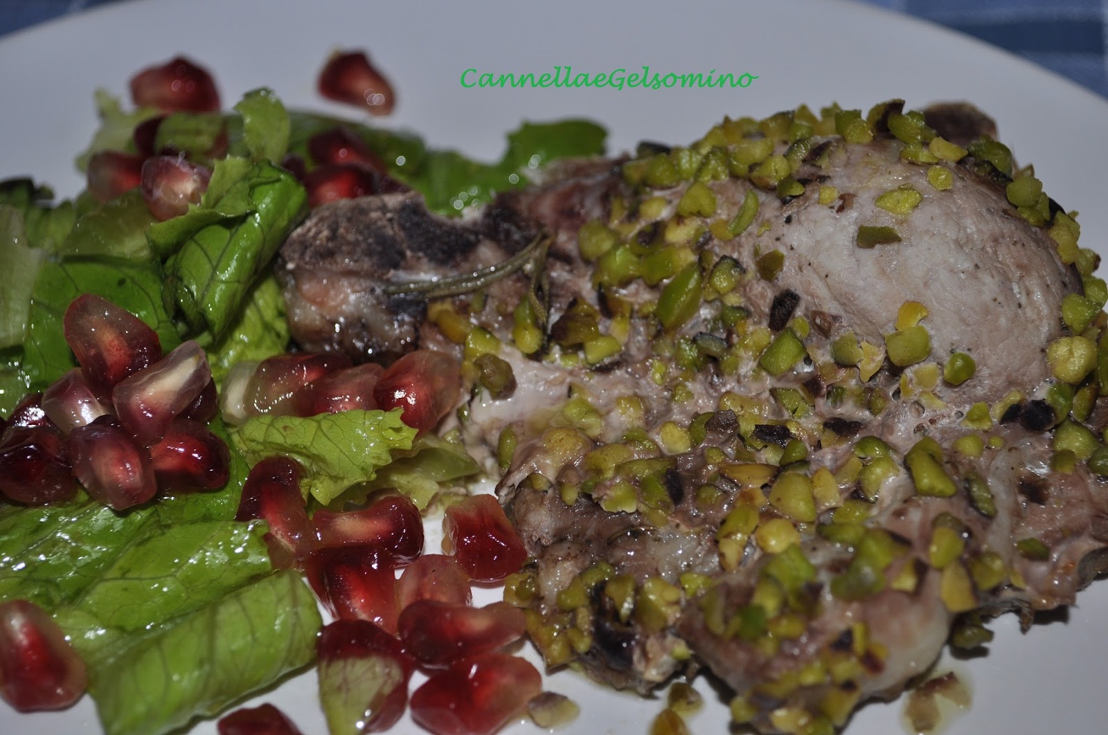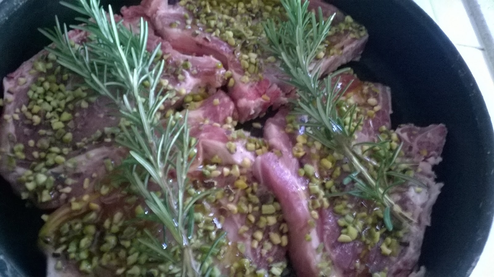 Metto sulla carne dei rametti di rosmarino e inforno a 180° per 20 minuti. Quando sono quasi cotte, per non farle asciugare troppo verso mezzo bicchiere di succo di melagrana (basta prenderne matà e con uno spremilimone potete facilmente ottenerne il succo).