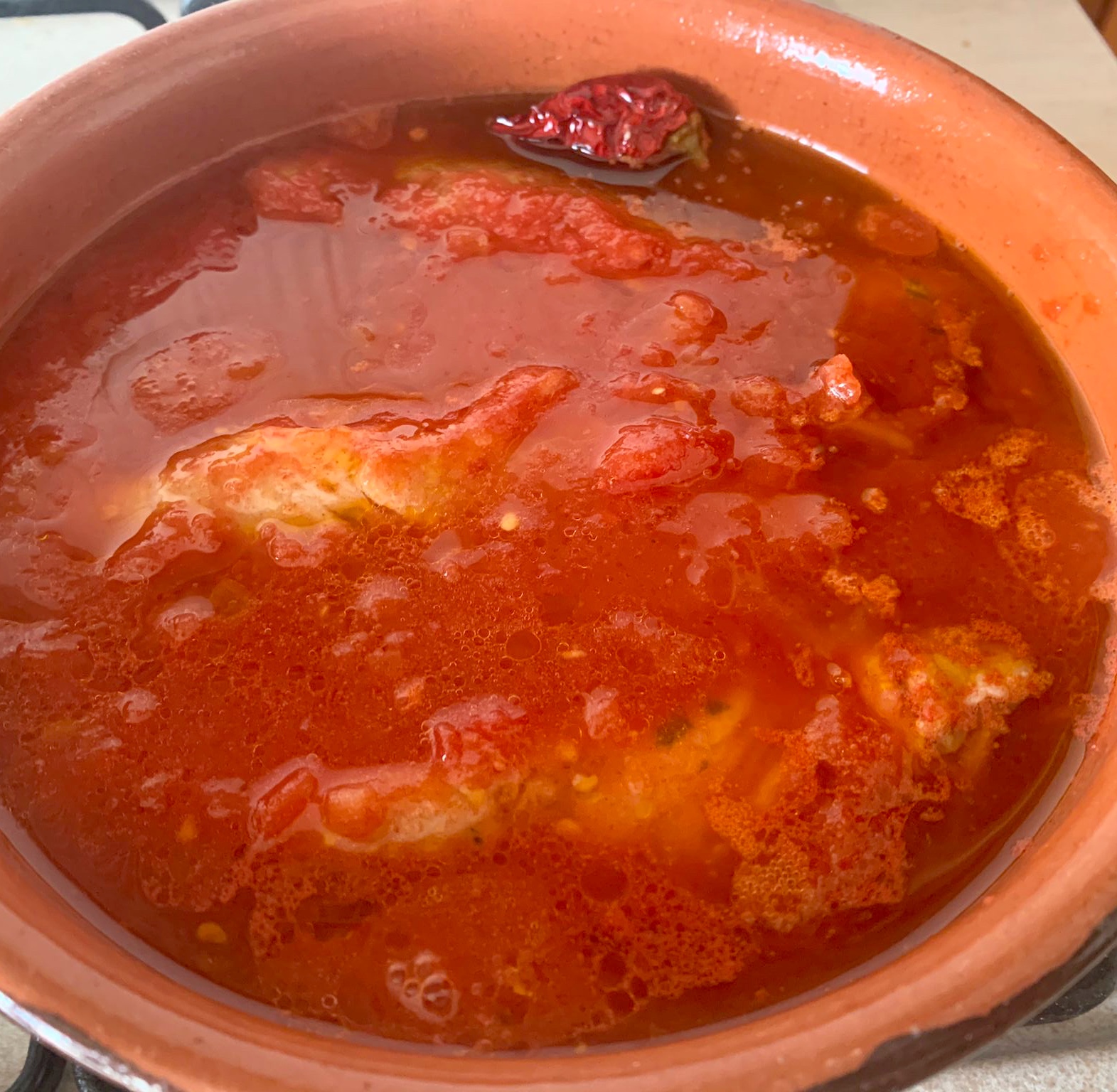 In un tegame fate rosolare nell’olio evo le braciole insieme a uno spicchio d’aglio e un peperoncino fino a che non cambiano colore in modo uniforme.