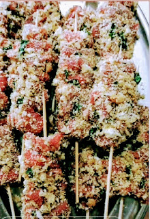 Appena avete completato tutte le braciole rotolatele nuovamente nel pangrattato. Infilzate gli involtini in uno spiedino (da 4 a 8 a vostro piacere) e cuoceteli sulla brace o su una piastra. Serviteli ben caldi accompagnando con un contorno di lattuga e pomodorini.
