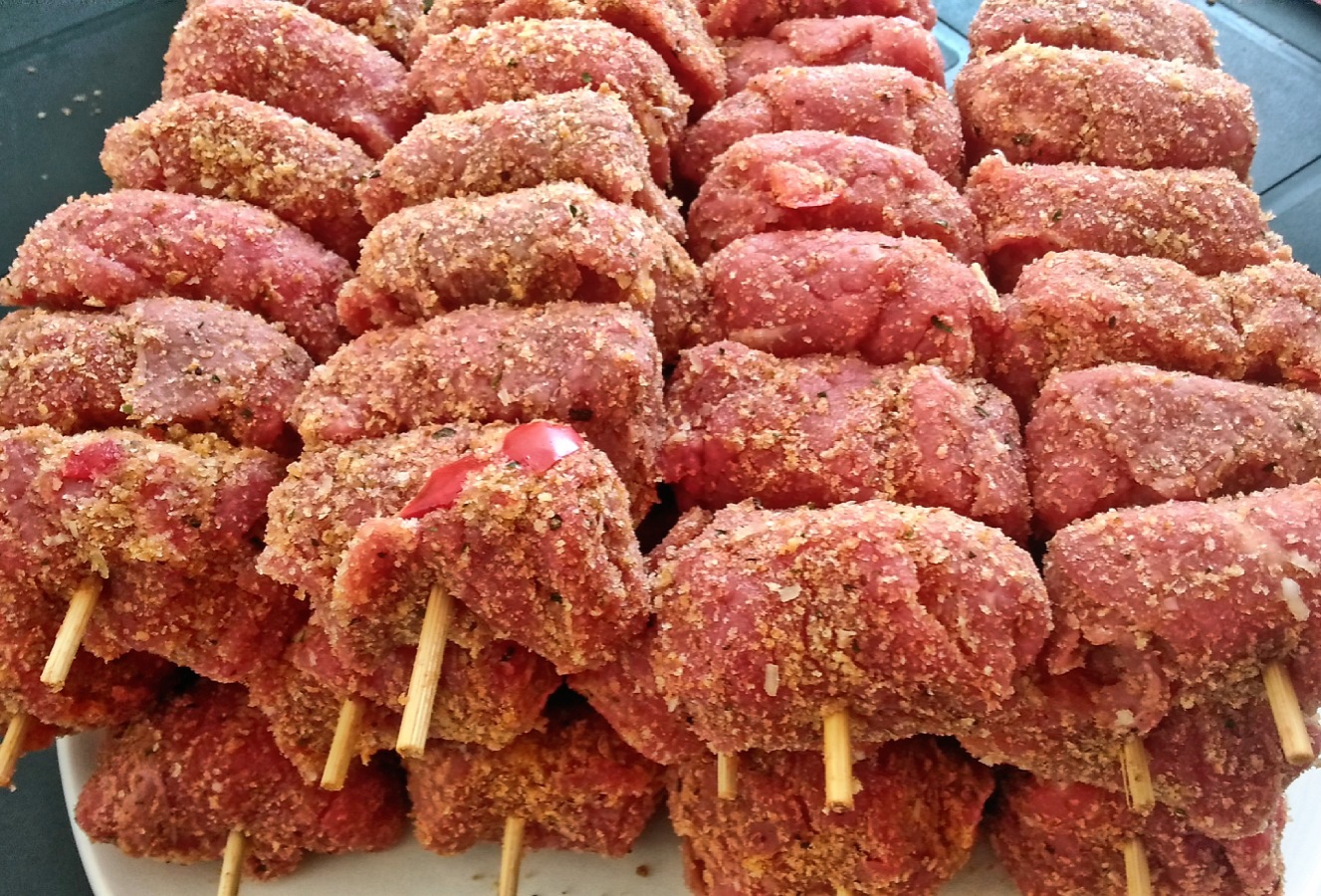 Specifico che con 1kg di carne vengono circa 6/7 spiedini da 5 braciolettine ciascuno. Io spesso li congelo e assicuro il risultato!