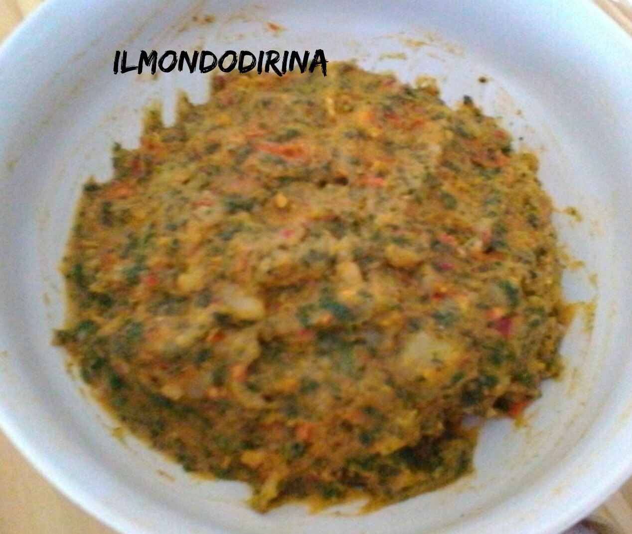 In una ciotola versate le patate, il purè di cime e la nduja, aggiungete l’uovo, il pecorino grattugiato e le foglie di basilico sminuzzate.