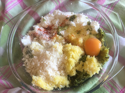 Lessate le patate con la buccia in acqua salata e passatele allo schiacciapatate. Versate la purea in una ciotola e aggiungete le cimette di broccoli schiacciati con la forchetta, la ricotta, l’uovo e i formaggi. Mescolate il tutto e regolate di sale.