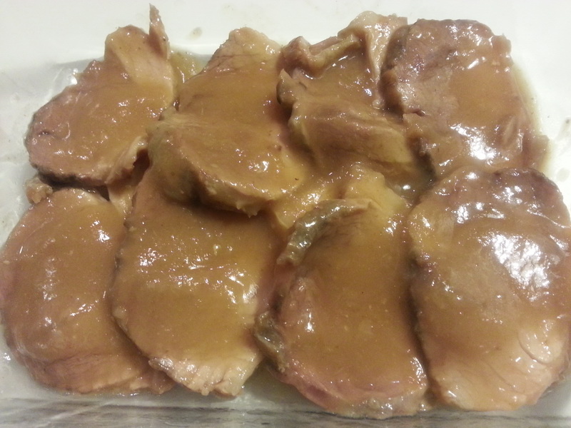 Servire la carne affettata e coperta con la salsa di cipolle.