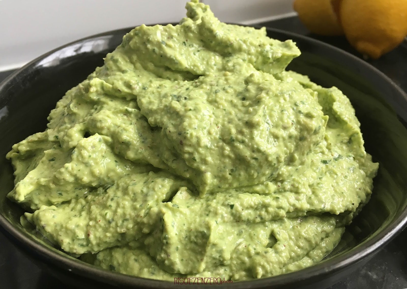 La ricetta originale parla di un avocado e mezzo e del succo di un limone e mezzo ma personalmente dopo aver seguito queste dosi ho preferito diminuire sia l’avocado che il limone per un pesto piu’ delicato e meno aspro. A discrezione quindi potete usare le dosi che meglio si avvicinano ai vostri gusti