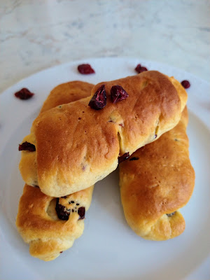 Aggiungete il burro, reso a pomata e poi i mirtilli rossi disidratati.