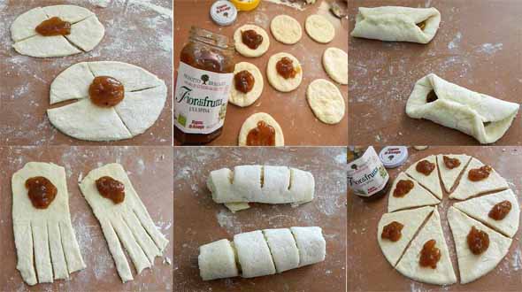 dividere l’impasto e preparare le brioche. Io le ho preparato in forme diverse usando sempre per tutte come farcitura Fiordifrutta Uva Spina.