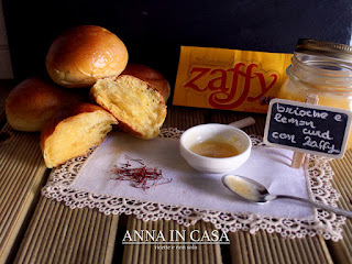 l’aggiunta agli ingredienti dello zafferano, conferisce alla brioche un aroma che si adatta bene all’accompagnamento dolce, nel mio caso lemon curd con pistilli di zafferano, o al salato, come per esempio con i salumi.