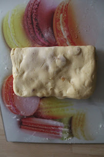 Incordare il composto e, poco alla volta, unire 100 g di fiocchetti di burro, sempre aspettando che sia ben assorbito il precedente prima di aggiungere il successivo (come fatto per le uova). Tenete da parte un fiocchetto di burro e lavoratelo con il sale. Finito di unire il burro, incorporate anche quel poco che avete lavorato con il sale. Se il composto risultasse un po’ appiccicoso, trasferitelo sulla spianatoia leggermente infarinata ( pochissima farina).