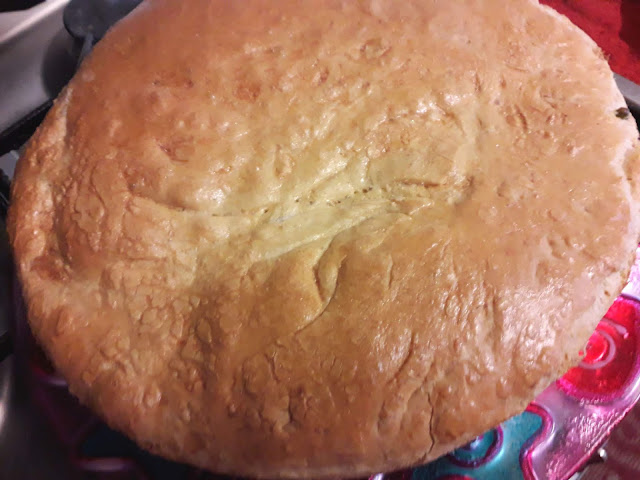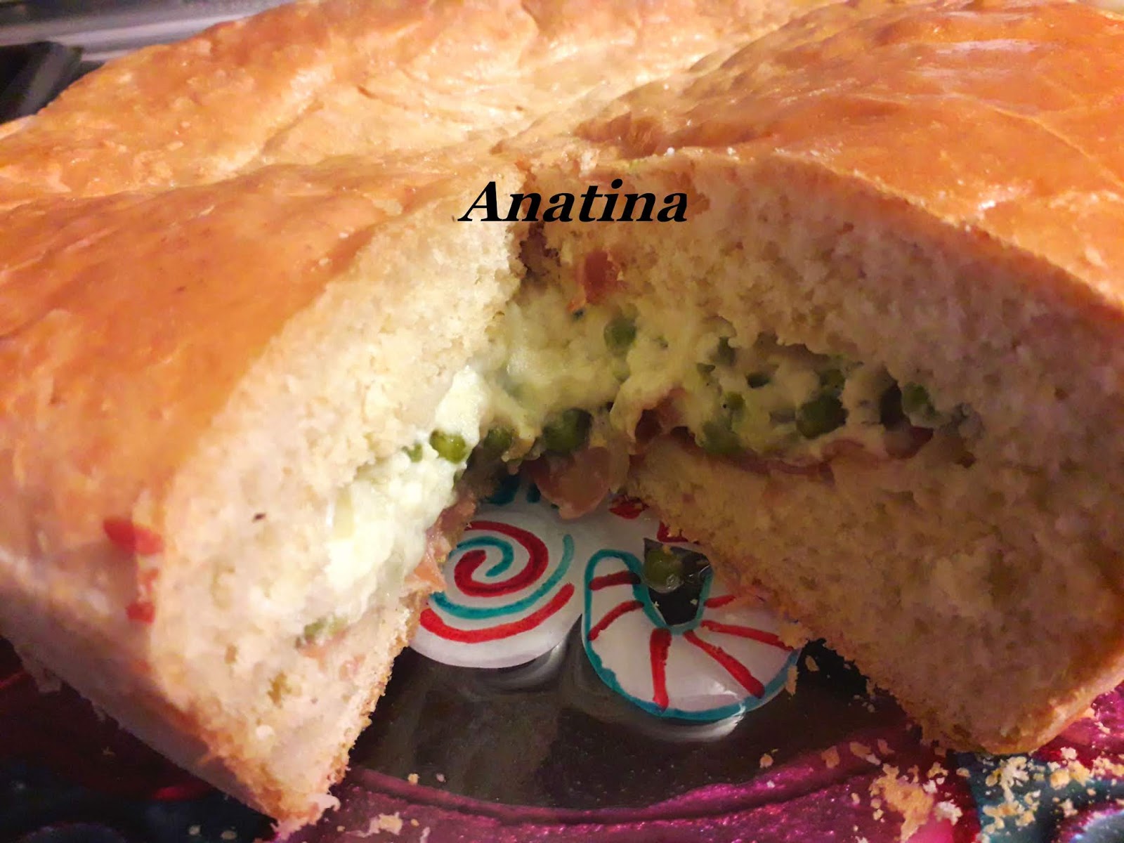 meta’ piselli,besciamella,caciocavallo tritato e i restanti piselli.Spennellare il bordo dell’impasto con albume e coprire il tutto con la restante pasta.Lasciare a rilievitare coperto,ancora 1 ora .