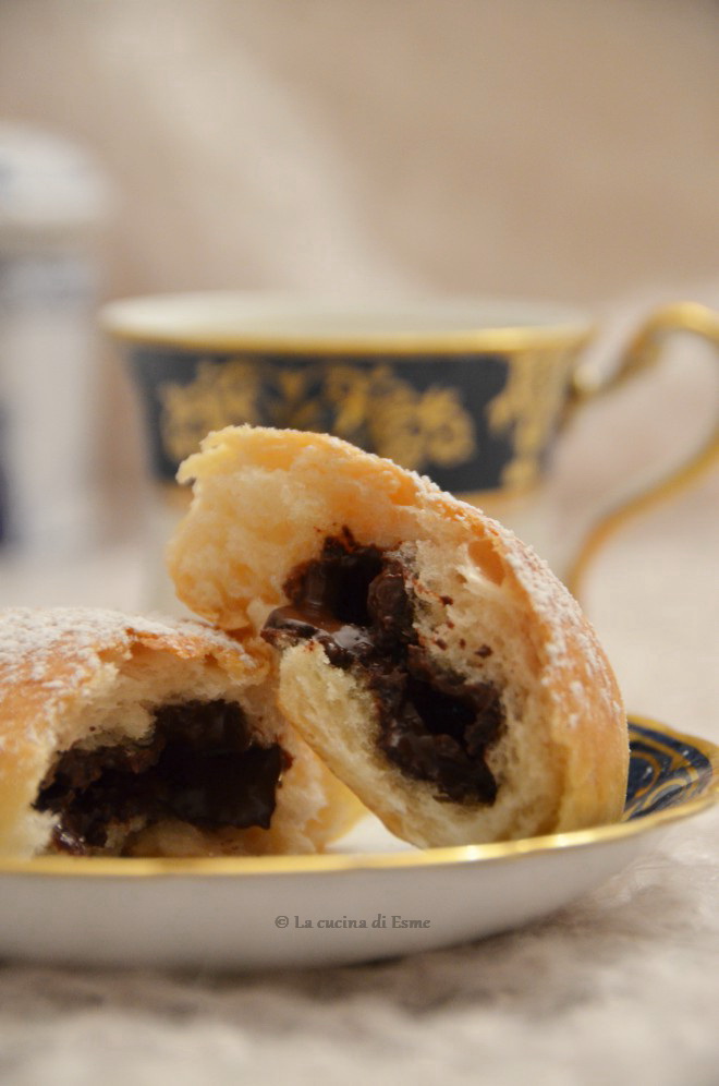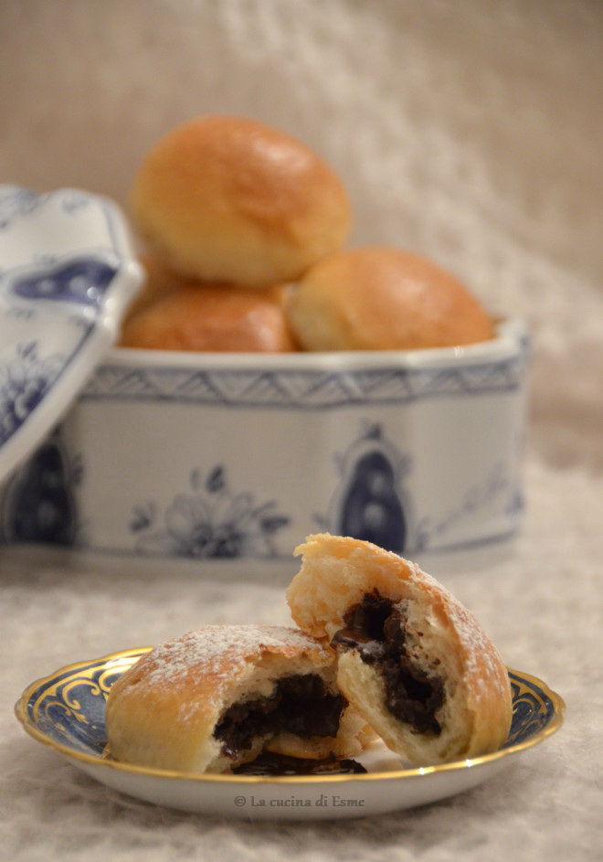 Ho un’amica che ha sofferto per amore, è uscita a pezzi da un brutto divorzio, ma ora è più forte e più bella che mai, orgogliosa della sua nuova vita. Ho un’amica che ha stretto i denti, ha lottato con tutte le sue forze e ha sconfitto il più brutto dei mali, ed ora sorride alla vita con la leggerezza di una bambina. Ho un’amica che improvvisamente ha perso il suo lavoro, ma non si è abbattuta, anzi si è ricostruita ed ora è più fiera che mai di sé stessa e della sua ricreata professionalità. Noi donne siamo così, dentro ognuna di noi si nasconde un piccolo ninja, pronto a saltar fuori al momento del bisogno. Siamo fragili come un cristallo e dure come un diamante, romantiche come bambine, ma coraggiose come guerrieri. Sempre pronte a lottare contro le avversità, a combattere per i nostri sogni e per chi amiamo, avanzando nella vita a passo fermo e testa alta. Il guerriero ninja che è dentro di noi, non si lascia abbattere dai colpi e non si piega di fronte alle difficoltà, innatamente altruiste, siamo anche capaci di sano egoismo. Cadiamo, ma ci rialziamo …. la nostra forza speciale è nella nostra capacità innata di saperci reinventare continuamente. Siamo tutte un pò fate e un pò streghe e come tali spargiamo magia anche nelle nostre cucine, oggi magicamente dal mio forno sono uscite queste golosissime brioche ripiene di cioccolato fondente …. Golosità allo stato puro, provatele e non ne potrete più fare a meno!