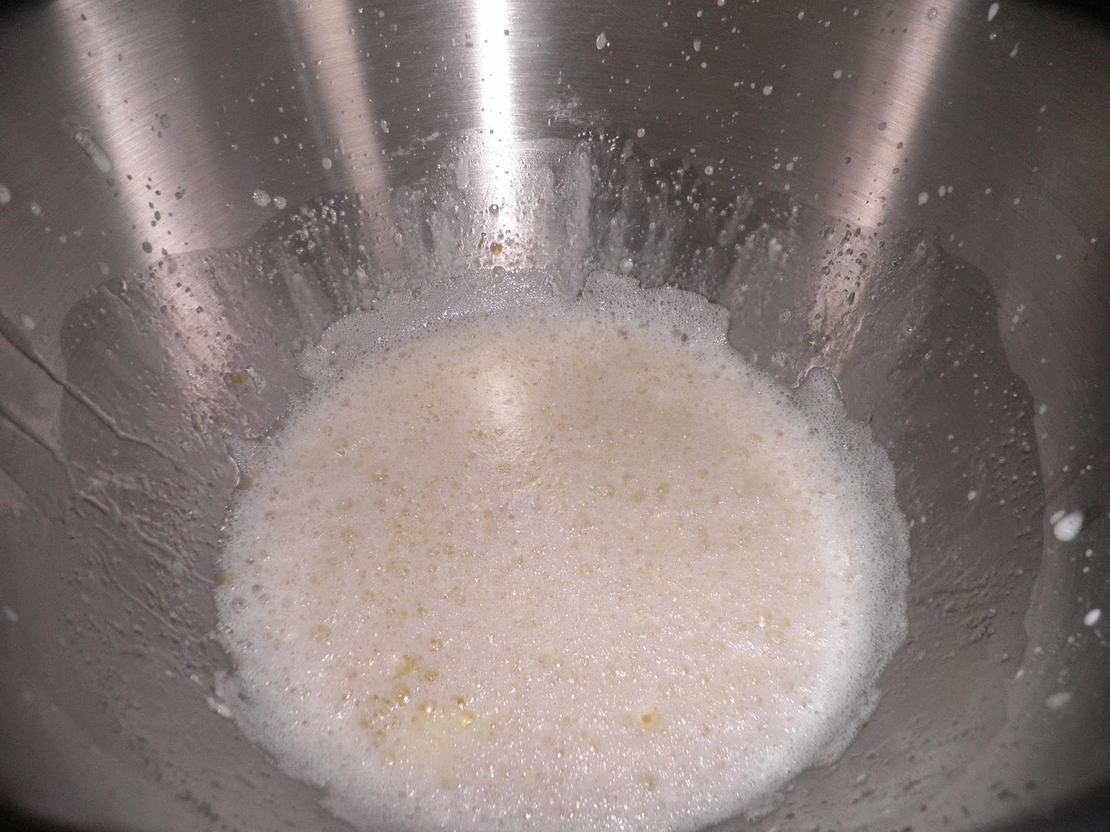 Oggi vi propongo la ricetta che utilizza il lievito madre: prendetene 150 g, rinfrescato il giorno prima con farina manitoba, scioglietelo con 250 ml di latte nella planetaria.