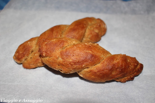 Mix dry ingredients with liquid ingredients, work together until it forms a smooth and homogeneous mixture. Let rise by covering with a cloth for at least 2-3 hours. Shape brioches: create two small sticks, weave it and arrange on a baking sheet covered with parchment paper for another 50-60 minutes. Brush brioches surface with milk and sugar and bake in a preheated oven at 180°C for about 20 minutes or until golden brown.