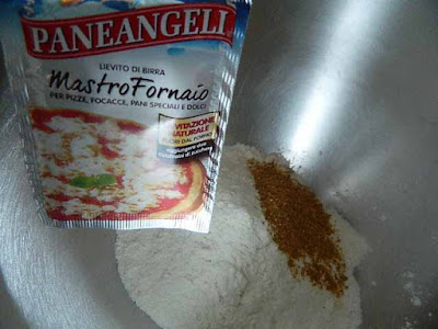 Nella ciotola della planetaria o sulla spianatoia mettere le farine e il Lievito di Birra Mastro Fornaio,