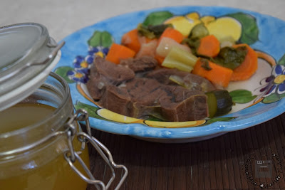Riunite in una pentola capiente la carne e le verdure, coprite con acqua fredda e salate. Cuocete per circa due ore. Filtrate il brodo (può essere utilizzato per tortellini, pastina, risotti) tenendo da parte le verdure e la carne che potrete condire e gustare a temperatura ambiente condendo con sale, olio e limone.