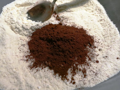 Setacciare la farina con il lievito, il pizzico di sale e il cacao…