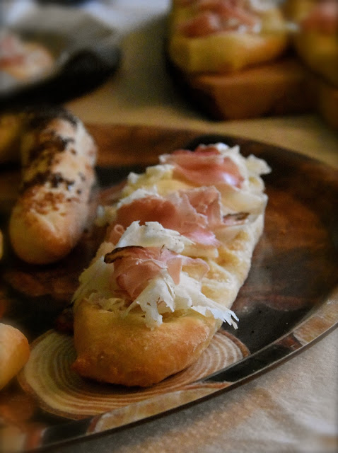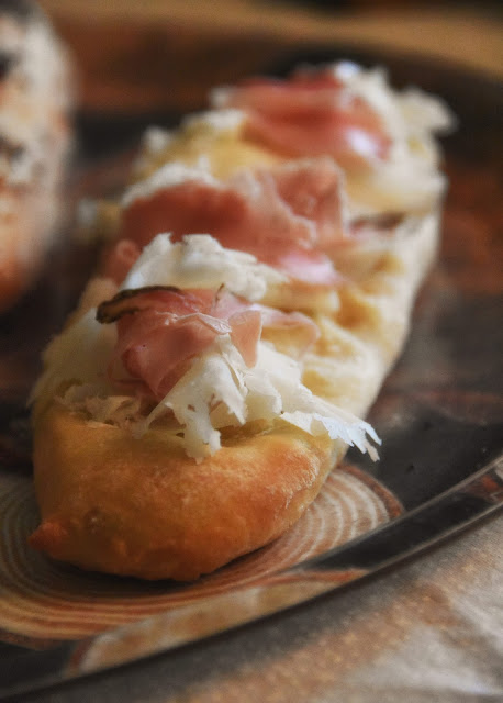 Di seguito vedete alcune pizze e focacce molto semplici, condite con prosciutto arrosto, Raspadura Lodigiana e mozzarella.