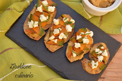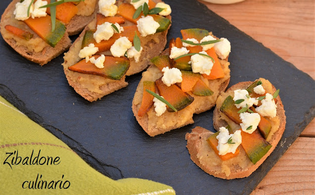 Avevamo un documento da cui estrapolare tante ricette interessanti con questo ingrediente, è stato veramente imbarazzante scegliere la ricetta da replicare. Dopo aver vagliato, scelto e poi riscelto ho deciso per queste semplice bruschette in cui la zucca è protagonista assieme a due ingredienti tipici della cucina greca: la feta, il formaggio di pecora più famoso al mondo e la skordalia, una crema adatta agli aperitivi.