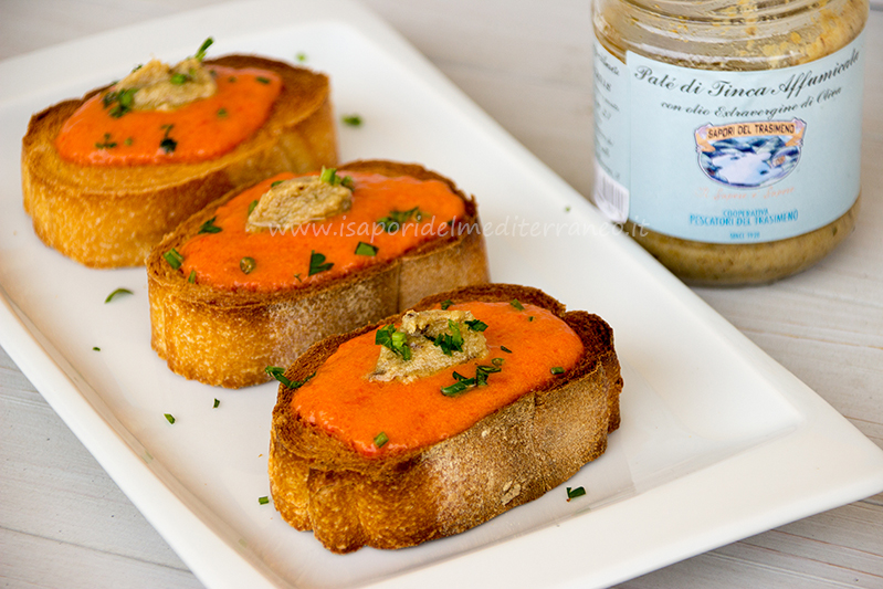 Bruschette con crema di peperone e paté di tinca affumicata