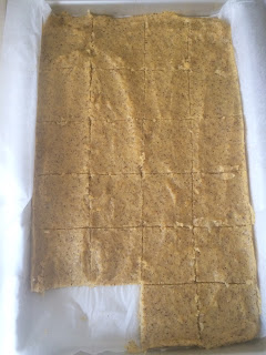 Foderare una teglia di carta forno, versarvi la polenta e livellare con il dorso del cucchiaio.
