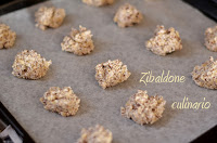 Formare delle palline con l’aiuto si due cucchiaini, posizionarle a distanza tra loro, e poi procedere alla cottura con forno già caldo a 140-150°C, funzione statica per 55-60 minuti (controllare la colorazione, non la consistenza , quando le tirerete fuori dal forno saranno ancora morbide).