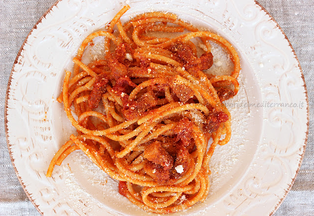 La cucina italiana ha un patrimonio unico al mondo, frutto di almeno due millenni di storia. Ogni piatto della nostra tradizione culinaria, si fonda su ingredienti tipici del territorio accompagnata da una preparazione semplice. L’amatriciana rispecchia appieno questo binomio vincente. Pasto di una cucina occasionale numerosissimi pastori di amatrice consumava durante la transumanza delle pecore. In queste lunghissime traversate era loro consuetudine portare nei loro zaini pezzi di pecorino, sacchetti di pepe nero, pasta essiccata guanciale e strutto. Nasce bianca, ma nel corso degli anni subisce una piccola rivisitazione, l’aggiunta del pomodoro.