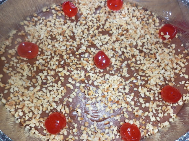 Fate raffreddare a temperatura ambiente e solamente quando sarà freddo mettetelo in frigo meglio per una notte intera. Il giorno dopo o quando lo dovete servire, togliete la pellicola e sbizzarritevi, io l’ho cosparso di granella di nocciole e ho aggiunto delle ciliegine candite, potete andare anche di panna vegetale o granella di biscotti vegan. Dipende dalle calorie che volete abbia il vostro dolce.