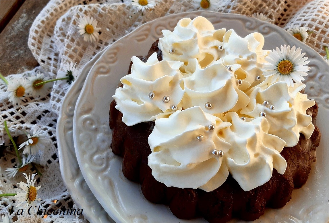 Al momento di servire montare la panna con zucchero a velo a piacere e decorare il dolce secondo il gusto: è possibile usare confettini, frutta, biscottini …