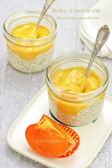 Non vorrei che anche quest’anno finisse la stagione dei cachi prima di riuscire a postare questo delizioso budino di semi di chia alla nocciola e frutta. E’ una preparazione molto semplice e sana. Potrebbe essere anche una ricetta crudista, utilizzando nocciole non tostate e sciroppo d’agave raw, in ogni caso comunque una cottura vera e propria per questo budino non è prevista.