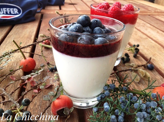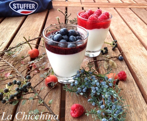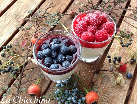 Passato il tempo necessario a far sì che i budini si rassodino, guarnirli con i coulis e terminare il dolce con i mirtilli e i lamponi tenuti da parte…