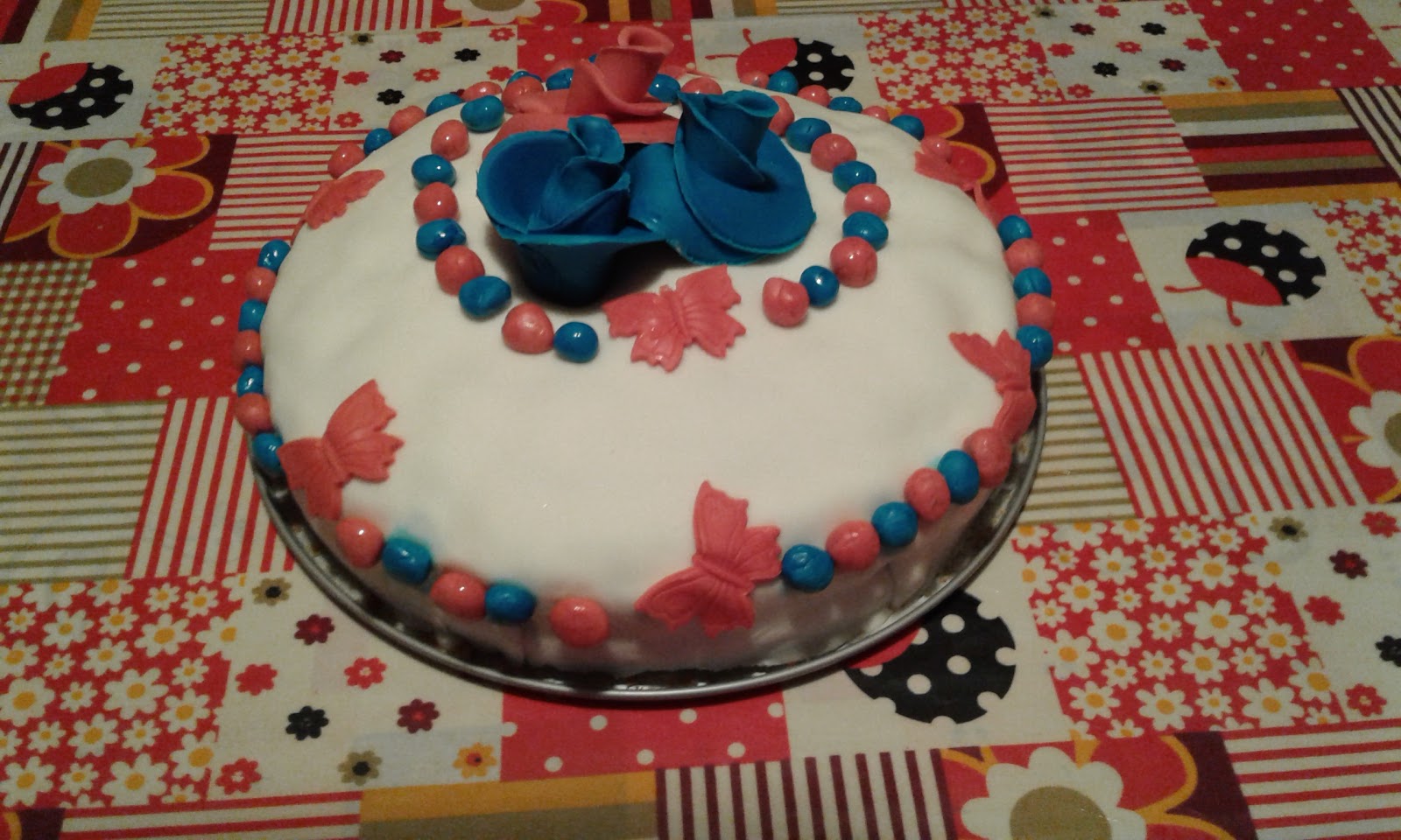 La ricetta della base è sempre la stessa della schiacciata fiorentina che già conoscete, l’ho farcita con panna montata al caffè dopo aver bagnato la torta con acqua e zucchero, poi decorata con pasta di zucchero bianca e decorazioni fatte a mano da mia figlia Eleonora e la sottoscritta.