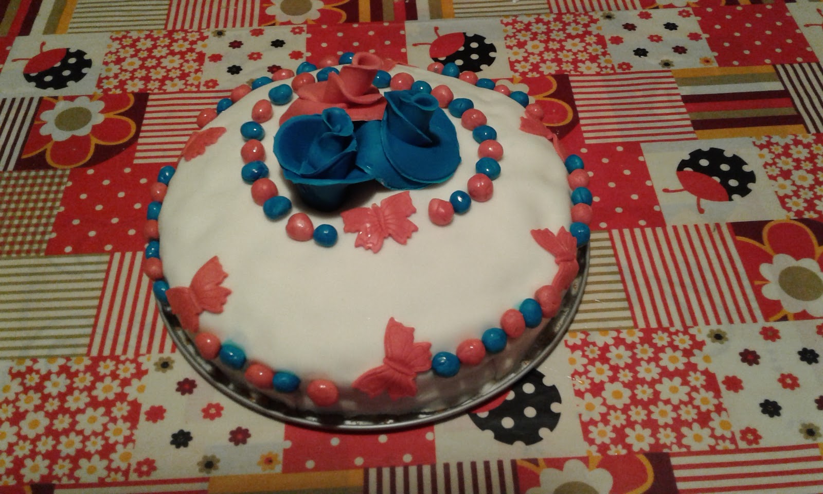 La ricetta della base è sempre la stessa della schiacciata fiorentina che già conoscete, l’ho farcita con panna montata al caffè dopo aver bagnato la torta con acqua e zucchero, poi decorata con pasta di zucchero bianca e decorazioni fatte a mano da mia figlia Eleonora e la sottoscritta.