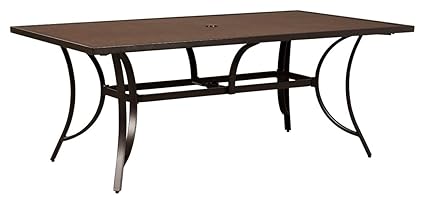 Ashley Furniture Signature Design Burnella Outdoor Rectangular Dining Table With Umbrella Option Adjustable Lattice Top Seats 8 Brown