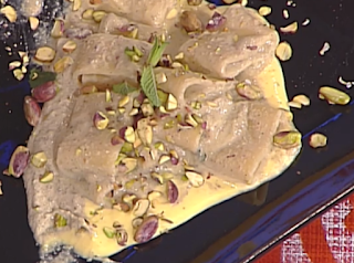 Frullarla con i pistacchi, la menta, la scorza gratt. del limone e salare.