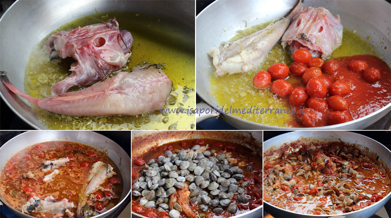 Dopo le ultime ricette della tradizione culinaria di Marcianise, posto una ricetta che non tramonterà mai e che può essere inserita nell’elenco delle mie ricette preferite per gusto e delicatezza. Sul web esiste una ricetta standard per cucinare la pasta con la rana pescatrice e cioè, fare il fumetto con la testa e e aggiungerlo poi nel sugo con i pomodori, finire la cottura in quel fumetto. In questa ricetta niente di tutto questo……….ho cotto nella stessa padella, testa, coda, e pomodoro……..