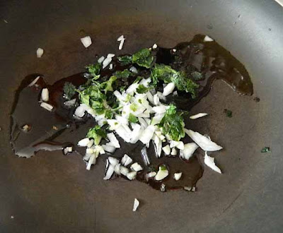 In una padella mettere l’olio e unire la cipolla tritata e il prezzemolo,