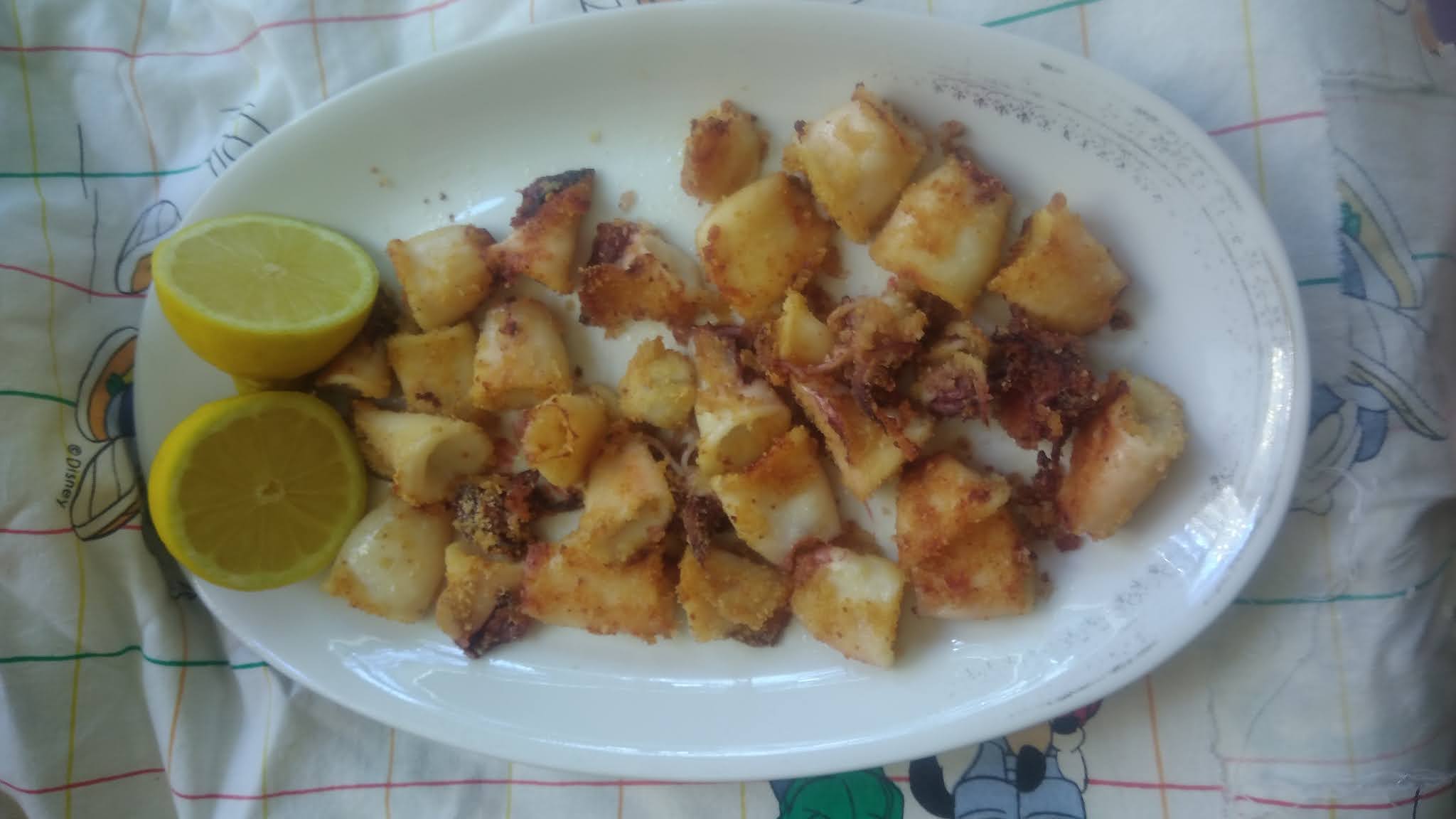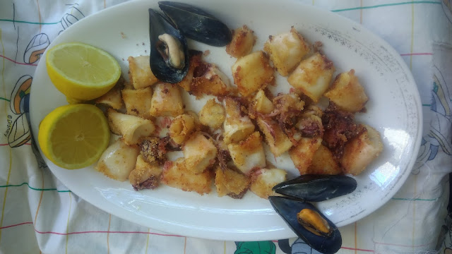 il fritto di pesce di solito è misto calamari, gamberi e tanto altro