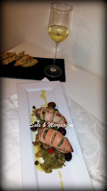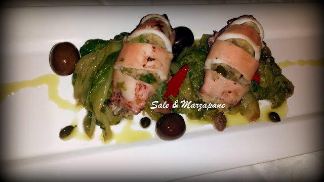 La ricetta che vi propongo oggi prevede calamari farciti con zucchine e olive serviti su un letto di saporitissima scarola ripassata in padella.