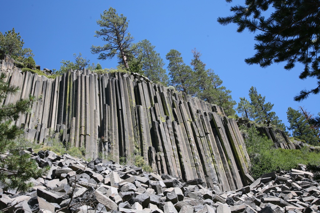 In California, non lontani dalla località sciistica di Mammoth Lakes si trova Devil’s Postpile National Monument, un luogo di rara bellezza dove enormi colonne di basalto alte 18 metri si innalzano verso il cielo.