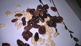 Divido l’impasto in due: in metà mettero l’aglio tritato, il pangrattato (due cucchiai), l’uvetta e i pinoli, nell’altro invece l’aglio e il formaggio tagliato a tocchetti.