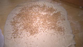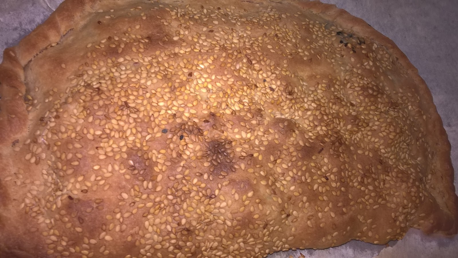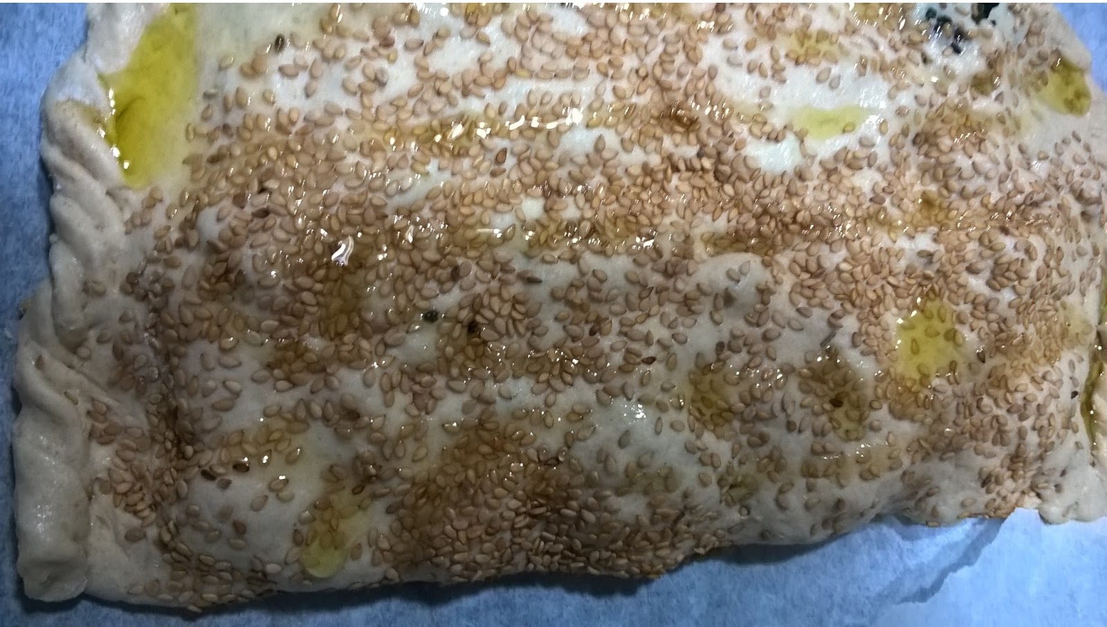 Prendete l’impasto, stendetelo con il mattarello o con le mani (è molto morbido) sulla spianatoia dove avrete cosparso dei semi di sesamo. Mentre voi spianate i semini si attaccheranno.