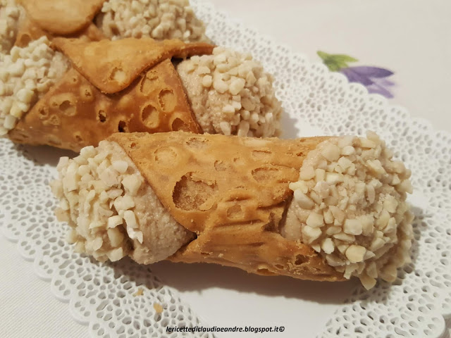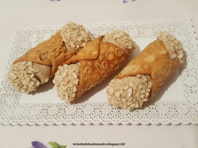 - Riempire i cannoli con la crema e decorare i bordi con della granella di mandorle a piacere.